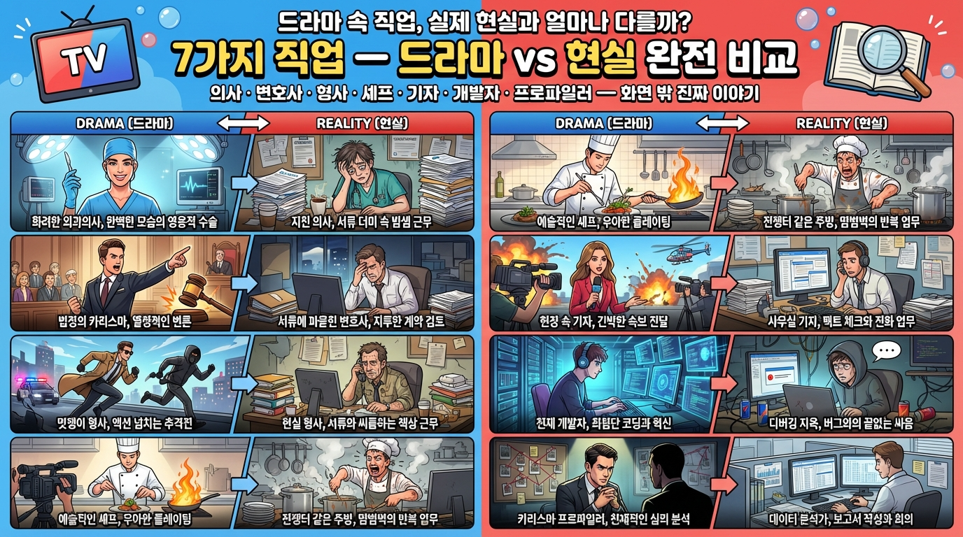 7가지 직업 — 드라마 vs 현실 완전 비교